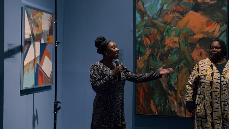 The day-long open house began with a robust lineup of performers in front of a multigenerational audience. Singers Ashley Villard and Serenity Bullock—who’ve both performed in NCAAA’s Black Nativity, an annual production of Langston Hughes’s Christmas gospel song-play—made a special appearance. Afterwards, multidisciplinary spoken word artist Amanda Shea rose to the stage with a captivating voice. She presented two of her works, “Resilience” and “Black Excellence,” musing on the multifaceted experiences of Black people: “Weight on her shoulders she carries worlds around / We simply orbit in her Universe / Even when she’s lost in her own space / Who will carry her burdens?” Shea breathed in “Resilience.” In “Black Excellence,” she declared, “It’s cosmic, it’s spiritual, it’s GOD / We sprinkle all that razzle dazzle on everything / No matter societal conditions, restraints or tactics / We thrive Periodt / The epitome of Black Excellence.” Shea finished her performance with a call and response that took on singing and spoken word. Collectively, we chanted: “I am surrounded by love.” With each utterance, it rang louder. As I repeated her words I felt freer, coming back to myself and those connected to me.
